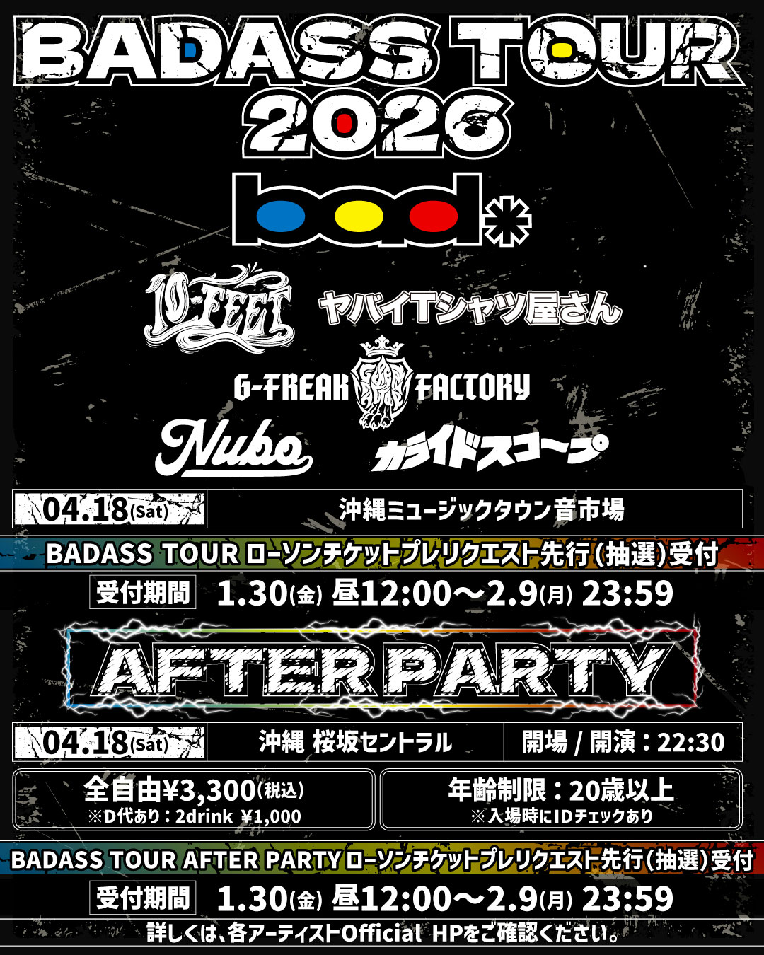 BADASS TOUR AFTER PARTY ローソンチケットプレリクエスト先行(抽選)受付に関して